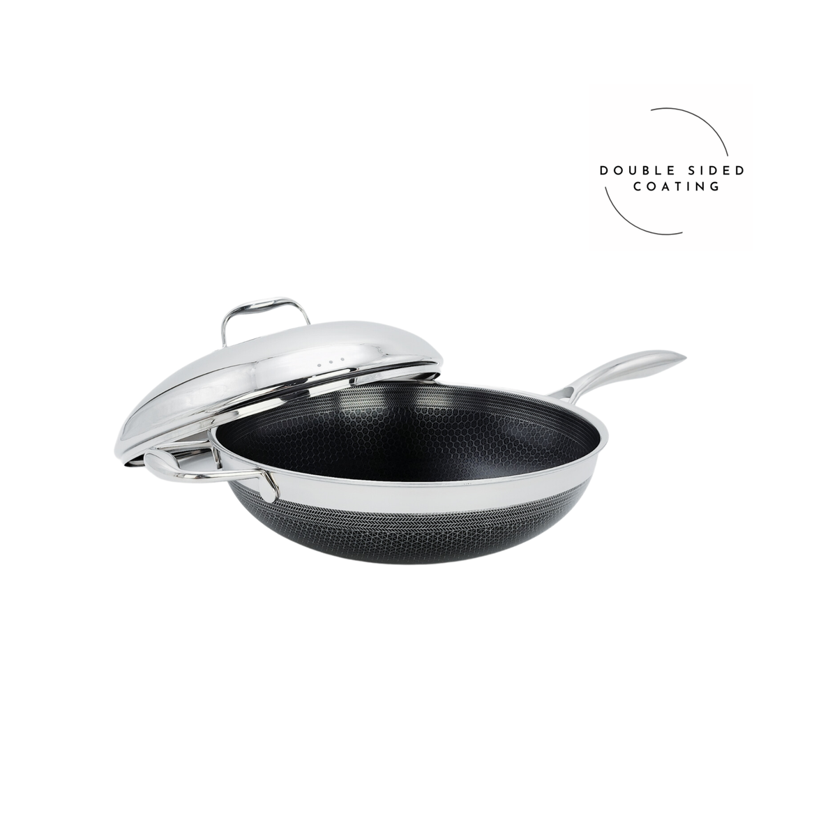 Cookcell features a unique hexagonal pattern embossed onto stainless steel. This innovative design allows for even oil distribution and reduces direct contact between food and the pan—minimizing sticking. A ceramic coating is applied within the recessed pattern, enhancing non-stick performance without compromising durability - resistant to peeling or damage even when used with metal utensils.